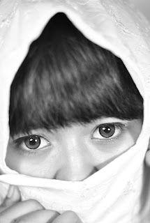 Dalam pembuatan foto yang kedua ini.. aku mendapatkan kesulitan yang bisa dibilang lebih .. bagaimana mengakali lighting supaya cahayanya bisa putih.. dan setelah diputar - putar kemana - mana lampu tersebut.. akhirnya.. yap.. dapat lighting yang lumayan, walaupun hanya menggunakan 2 lampu belajar.. wekekekek.. Dan tetap tanpa editan.. paling cuma memutar gambarnya biar berbentuk potrait.. Foto High Key ini lebih menunjukkan  kesan yang soft, lembut, elegan, dan anggun.. Namun dalam foto ini aku menyelipkan kesan misterius.. konsep dalam foto ini .. tema foto ini.. "The beauty of white"..
