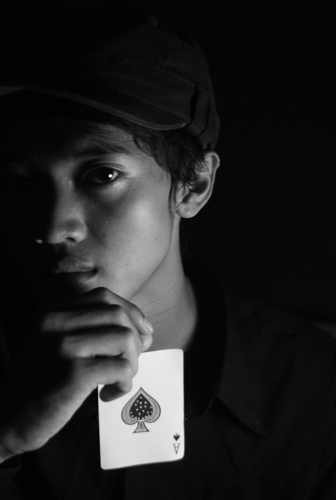 Pada dasarnya foto Low Key mempunyai karakteristik Foto yang bisa dibilang under. atau cenderung gelap.. sehingga mempunyai kesan kelam, gotic dan seram. Bisa juga menunjukkan kesan keras atau macho untuk model laki - laki. tapi karena ini adalah tugas kuliah jadi tidak boleh tambah editan jadi pure dari kamera saja.. Eh.. tapi  diedit sedikit dibuat potrait.. ^^ ..Tema yang aku angkat dalam foto Lowkey ini adalah. "I'M THE ACE"..